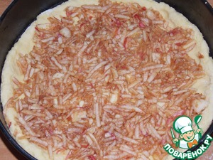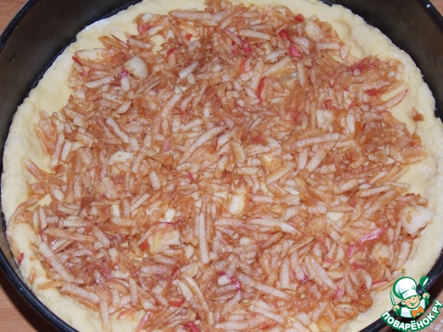 Посыпать коричневым сахаром. Из оставшегося теста сделать решётку на верх пирога. Смазать взбитым яйцом.