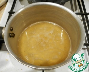 Желатин замочить холодной кипячёной водой и оставить до набухания.