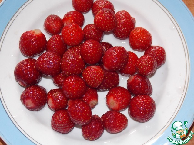 Клубнику помыть. Если ягоды крупные, разрезать.