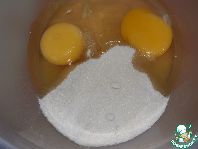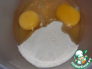 Разбить яйца, добавить сахар. Взбить.