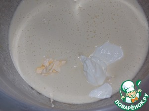 Постепенно всыпать муку. Перемешать до однородности. Тесто должно быть, как густая сметана.