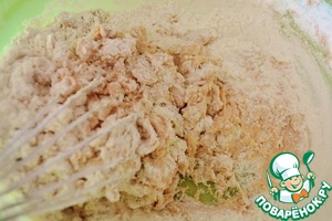 Ну, и в конце всыпаем муку. Быстро замешиваем тесто.
