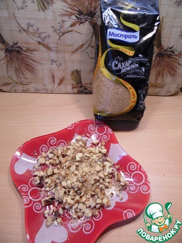 Гвоздику измельчить, смешать с мускатным орехом, сахаром и рублеными орехами.
