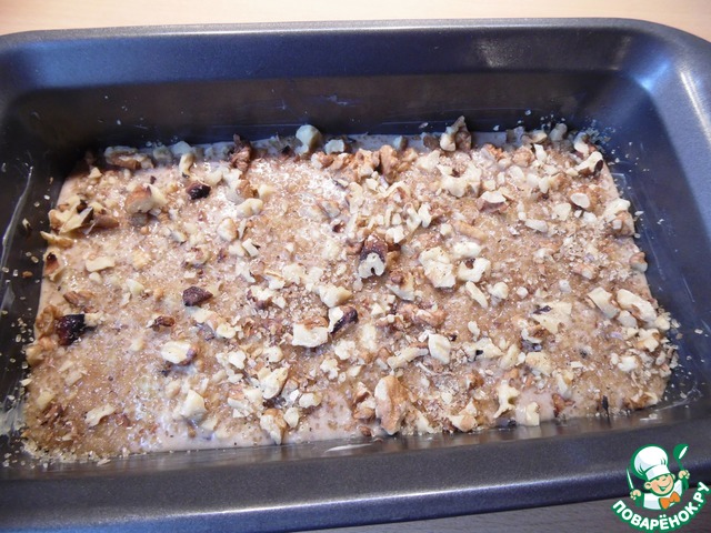 Полученную ореховую посыпку выложить слоем на тесто. Духовку разогреть до 180 град., выпекать 45-50 минут.