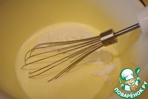 Осторожно (проверьте, чтобы масло не было горячим) влить растопленное сливочное масло