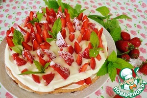 Присыпаем сахарной пудрой - когда уже накрываем на стол, чтобы клубника не дала сок, и украшаем свежей зеленью мяты или мелиссы.