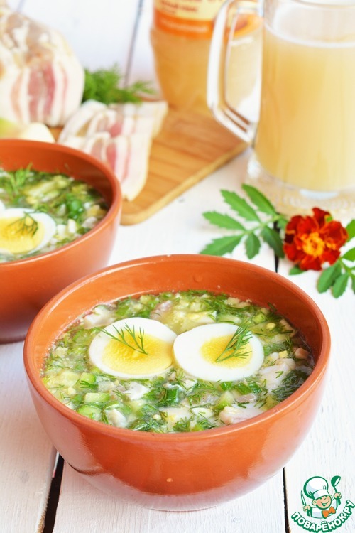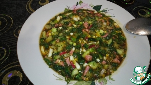 [+4]У меня была грудинка вместо сала, квас местного производителя, остальное по рецепту