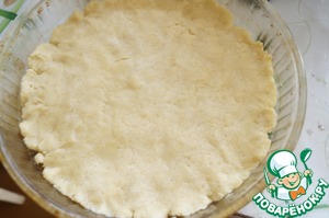 Готовое тесто выложить в форму для выпечки и аккуратно, руками, распределить по всей поверхности. Убрать форму с тестом в холодильник.