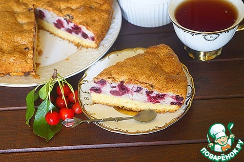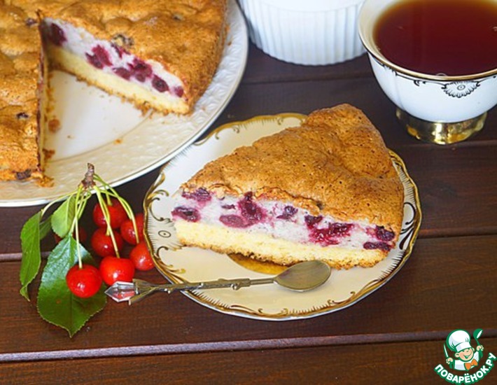 Нежный и вкусный пирог, отлично подойдет для вечерних дачных посиделок в саду. Готовится легко и достаточно быстро. Рекомендую вам попробовать этот пирог, вкус у его просто потрясающий, тем более сейчас сезон вишни. В этом пироге отлично сочетается сладость и небольшая кислинка от вишни.