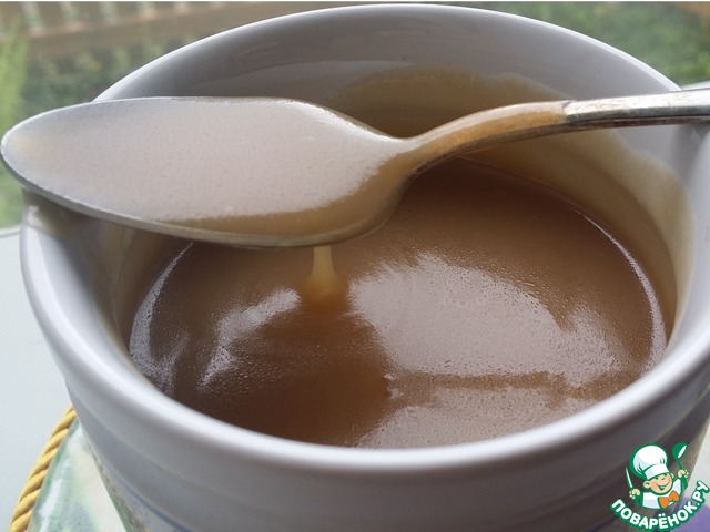 Вот такой соус получился. Его можно убрать в холодильник, он станет более густым. Я так и сделала, однако для мороженого лучше, чтобы консистенция соуса была примерно как на фото.