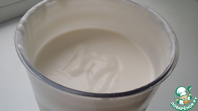 Приготовим сначала мороженое. Для этого хорошо охлажденные сливки нужно взбить до мягких пиков. Для тех, кто не очень дружит со сливками, предлагаю взять вот такой высокий и узкий стакан, в нем сливки взбиваются значительно быстрее, чем в широкой посуде. Это у меня стакан из набора для кухонного процессора, а для взбивания я использую насадку-венчик, и делаю так: в одной руке держу процессор с венчиком и взбиваю, а другой, придерживая стакан, кручу его на столе, таким образом сливки взбиваются моментально, главное, проверять их, чтобы не получить масло. Сливки нужно взбивать в 2 приема малыми порциями, иначе есть риск, что ничего не выйдет, то есть 500 г делим примерно пополам и взбиваем по отдельности, пока взбивается первая часть, вторая ждет в холодильнике. Если уж совсем не получилось взбить (ну бывает такое), можно добавить несколько капель лимонного сока. Но даже если и это не помогло (что очень и очень вряд ли), то можно просто остановить процесс взбивания и использовать то, что получилось. Я раньше не знала, как взбивать сливки, и никаких "мягких пиков" у меня не получалось, однако мороженое все равно выходило отменное. (К сожалению, на предпросмотре черновик рецепта фотография отображается не полностью, и стакан на ней какой-то непонятный. В общем, для быстрого взбивания лучше всего подходит не широкая и высокая посуда)