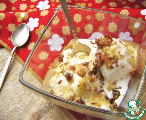 Рецепт «Сливочное мороженое с пралине и карамелью»: