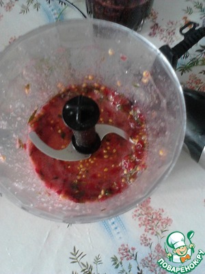 Сложить в чашу блендера ягоды, листочки мяты, воду, сахар и щепотку мускатного ореха.