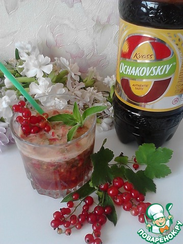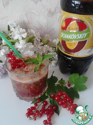 Ароматный коктейль с мятой и смородиной с квасом " Очаковский". Прекрасный напиток в летние знойные дни.