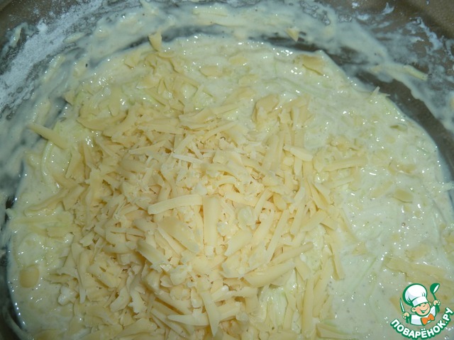 Натрите сыр на крупной терке. Соедините с овощной массой.