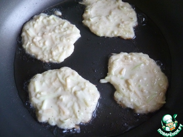 Выкладывайте массу ложкой на разогретое масло. Жарьте на среднем огне с двух сторон до румяной корочки. Переложите на салфетку, чтобы впитался лишний жир.