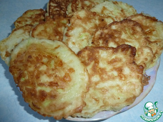Вкусные сырно-кабачковые драники. В 100 гр 108 ккал. Рецепт из журнала "Тайны звезд".