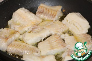 За это время на другой сковороде разогреть оставшееся растительное масло и быстро обжарить куски рыбы по 1 минуте с каждой стороны.