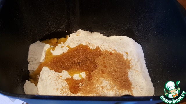В моей хлебопечке сначала загружаются дрожжи и сухие ингредиенты.