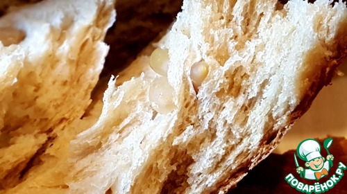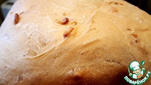 В книге рецептов этот хлеб называется "Простой белый хлеб", конечно в составе вода и нет кедровых орешков... но я не смогла удержаться и вот результат... вместо воды - квас, и в хлебе две горсти кедровых орехов, придавших обалденный аромат и приятный вкус простому хлебу!!! Угощайтесь!!!