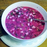 Летом самое время приготовить холодный свекольник. Тем более, что в огороде уже выросла свекла и молодые огурчики. Очень вкусный, витаминный холодный суп можно подавать как просто на свекольном отваре, так и добавляя сметану или кефир.