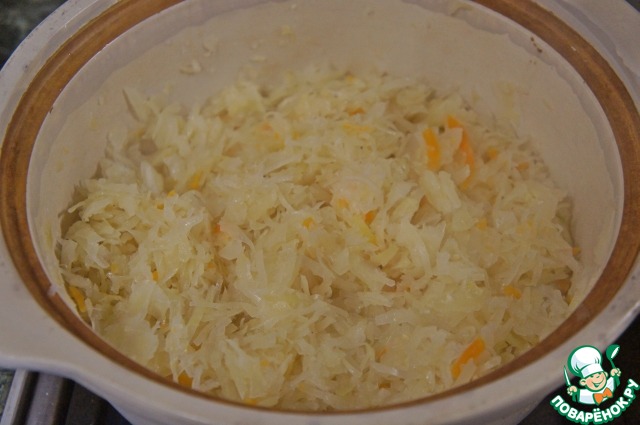 Капусту отжать от рассола.