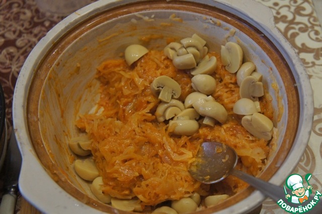 Оставшуюся капусту перемешать с грибочками