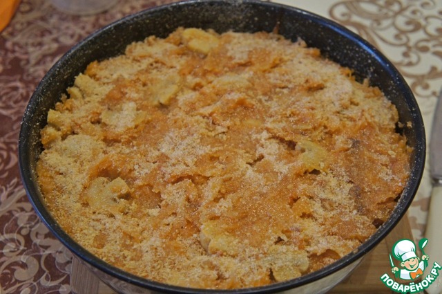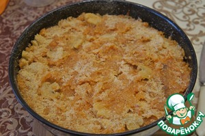 Разровнять, посыпать толчеными сухарями,