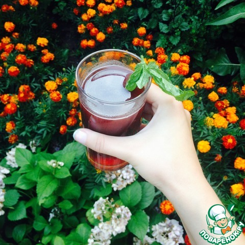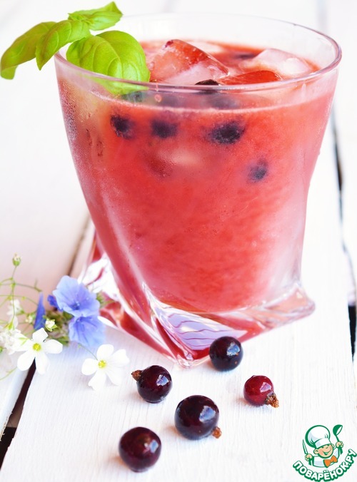 Рецепт «Коктейль с квасом, смородиной и базиликом»: