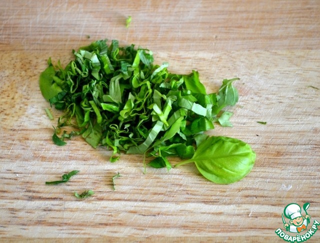Листья базилика нарежьте.