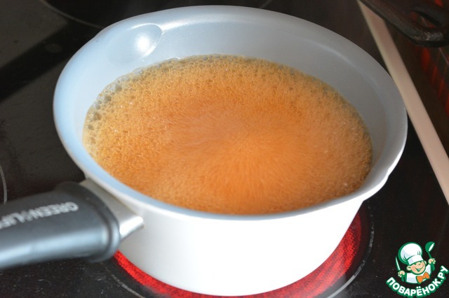 После чего всыпьте сахар и уварите слегка до состояния сиропа, добавьте корицу и остудите.