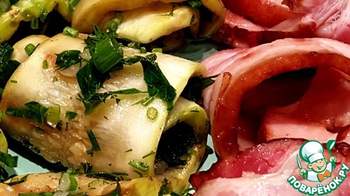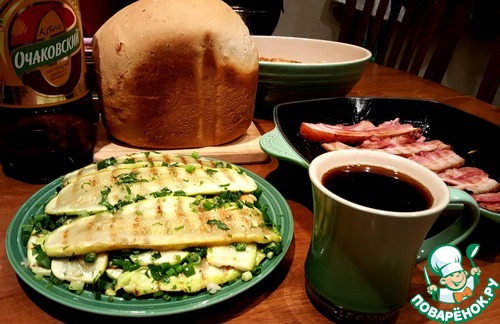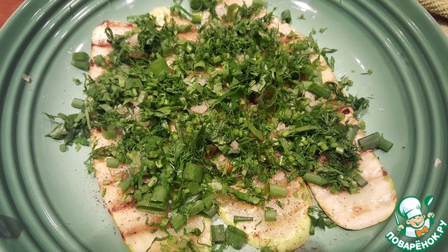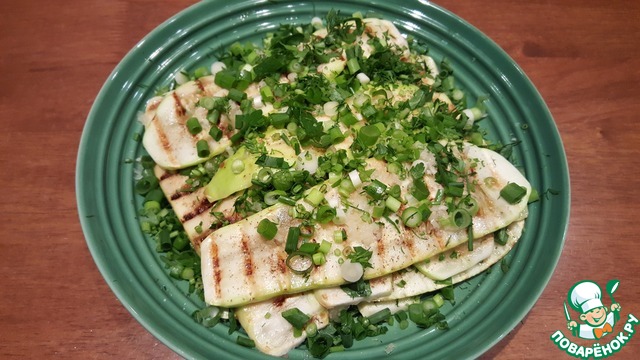 Замечательное блюдо для квасного ужина. Слегка обжаренные на сковороде гриль кабачки, сложенные в тарелку с зеленью, молодым чесночком и пряностями по вкусу. По желанию можно подать с грудинкой гриль и вкусным хлебушком. Угощайтесь!!!