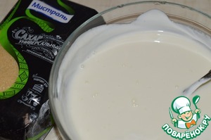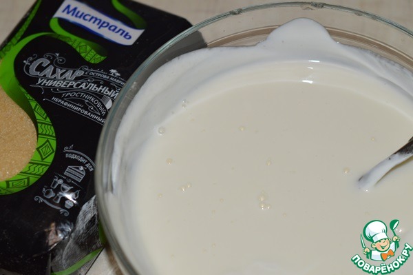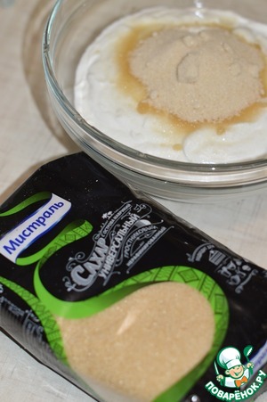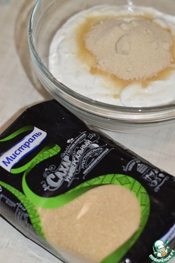 Сметану смешать с сахаром. -