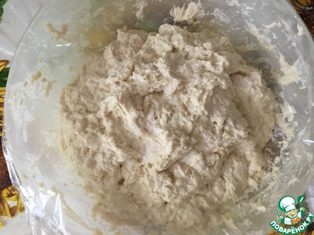 Для начала, нужно просто смешать все ингредиенты и затянуть миску пленкой. Оставить тесто при комнатной температуре на 1 час для ферментации. За этот час его нужно 3 раза сложить конвертом с интервалом в 20 минут. Тесто очень влажное, так и хочется добавить муки, но в этот- то и весь прикол, ничего добавлять больше не нужно.