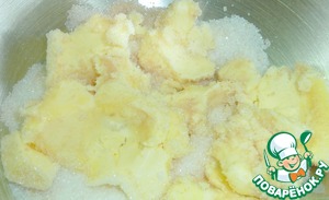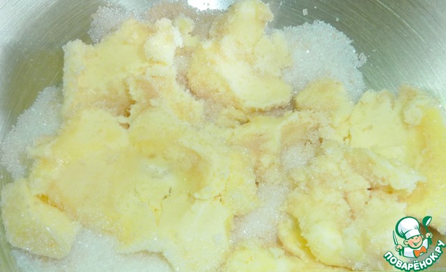 В небольшой миске смешать миксером размягченное сливочное масло, сахарный песок и ванильный сахар до однородной консистенции.