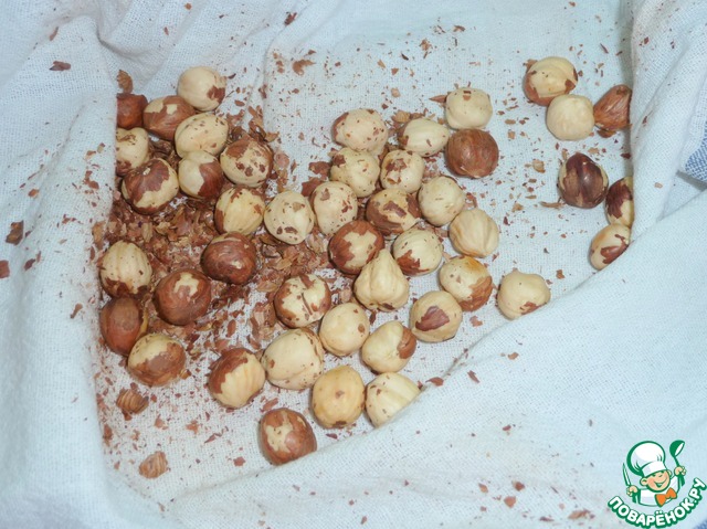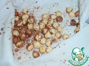 Орехи обжарить на сухой сковороде, положить горячими в полотенце, и перетирая меж пальцев слоями полотенца, очистить орехи.