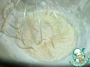 Добавить по одному, не переставая взбивать, к масляной смеси куриные белки.
