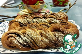 Далее пласт сворачиваем в трубочку. По широкой или по узкой стороне - решать вам, попробуйте оба варианта, мне больше нравится сворачивать по узкой стороне, так плюшечка более аккуратной выходит.
