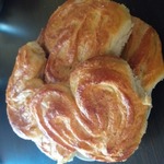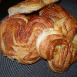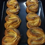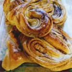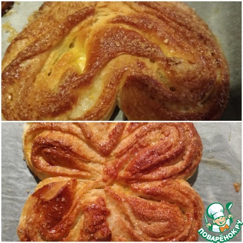 Сахар, которым посыпается пласт теста, оказывается снаружи и плюшка получается посыпанная сверху сахаром :) -