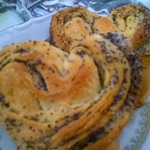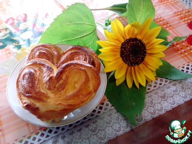 Затем разворачиваем разрезанный конец и получаем плюшку в форме сердечка.