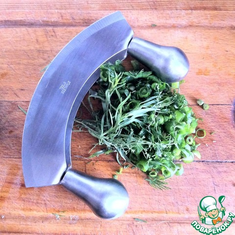 Мелко нарубить зеленый лук, укроп и эстрагон.