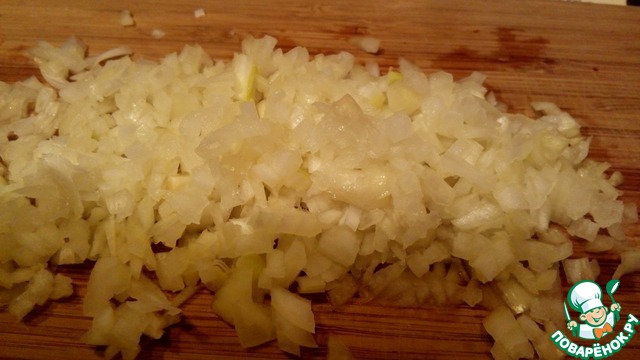 Нарезать кубиками репчатый лук