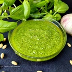 Классический итальянский соус песто готовят в керамической ступке, тщательно растирая все ингредиенты. Но я воспользовалась блендером, включив его на минимальной скорости. Больше не буду покупать этот соус в магазине. У меня получилось вкуснее! Ничего лишнего. Идеальный вкус!