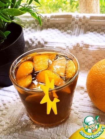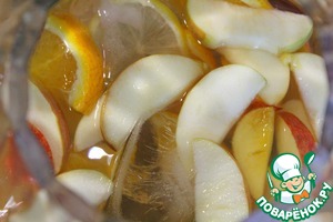 Влить холодный чай во фруктово-цитрусовую смесь.