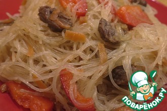 В вино добавляем соль, красный перец и сок, который успел натечь с обжаренного мяса. Заливаем эту смесь в кастрюльку, накрываем крышкой и ставим тушить при слабом кипении около 30 мин. Если вина оказалось маловато, можно долить немного воды, чтобы продукты в кастрюльке были чуть прикрыты.