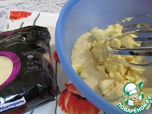 В отдельной миске взбить сахар Мистраль Мелкий тростниковый нерафинированный и размягченное сливочное масло.