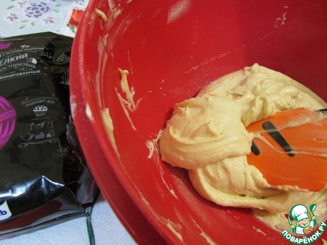 • Добавить муку и замесить тесто. Тесто как густая сметана.