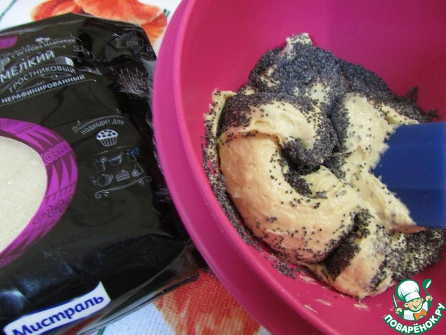 • Третий слой - маковый. Кекс отправить в разогретую духовку (180 градусов). Выпекать 60 минут.