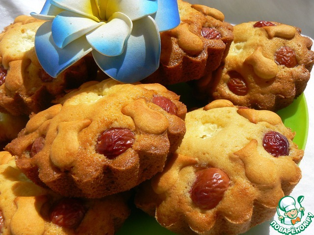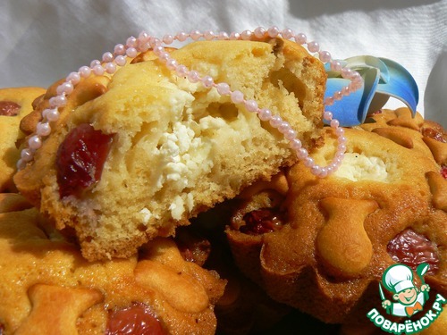 Побалуйте себя и близких вкусными и красивыми кексиками, в которых чудесным образом сочетаются сладость черешни, нежность творога и солоноватые крекеры