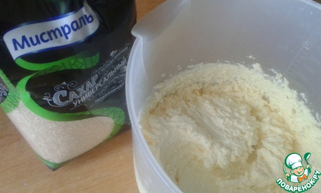 Маргарин (или сливочное масло) взбить с сахаром в течение нескольких минут, по одному вбить яйца, продолжая взбивать, добавить сметану, соду и муку. Тесто получится как густая сметана